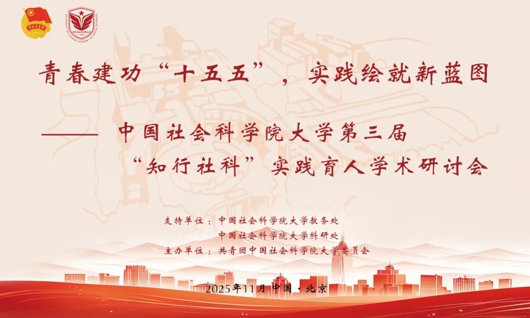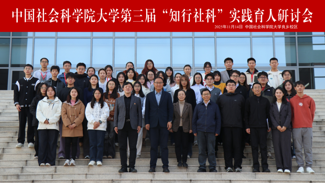 11月14日,中国社会科学院大学第三届“知行社科”实践育人学术研讨会于我校良乡校区成功举办。本届研讨会以“青春建功‘十五五’,实践绘就新蓝图”为主题,邀请到在社会调研与理论研究领域的专家学者与北京各高校优秀社会实践团队代表进行分享交流。校党委常委、副校长张树辉出席会议并致辞。马克思主义学院党委书记李楠、教务处副处长展宾宾等老师,第七期“青马工程”培训班学员、历届“知行社科”暑期社会实践团队代表等学生参加会议。