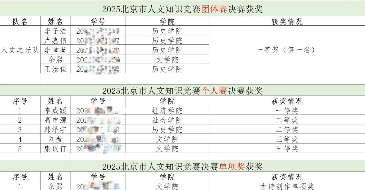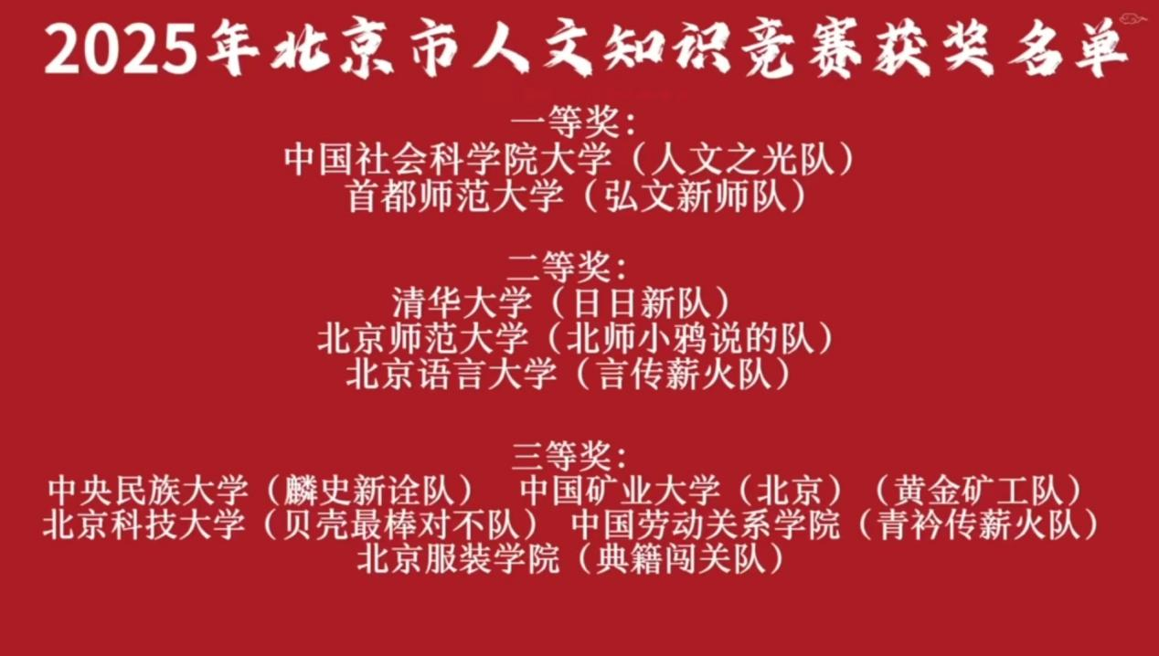 捷报传来!在11月15日落幕的2025年北京市大学生人文知识竞赛团队赛决赛中,中国社会科学院大学代表队凭借出色表现,荣获团体一等奖的优异成绩。此外,我校学子在个人奖项中同样表现不俗,斩获个人一等奖、个人二等奖等多项殊荣。
