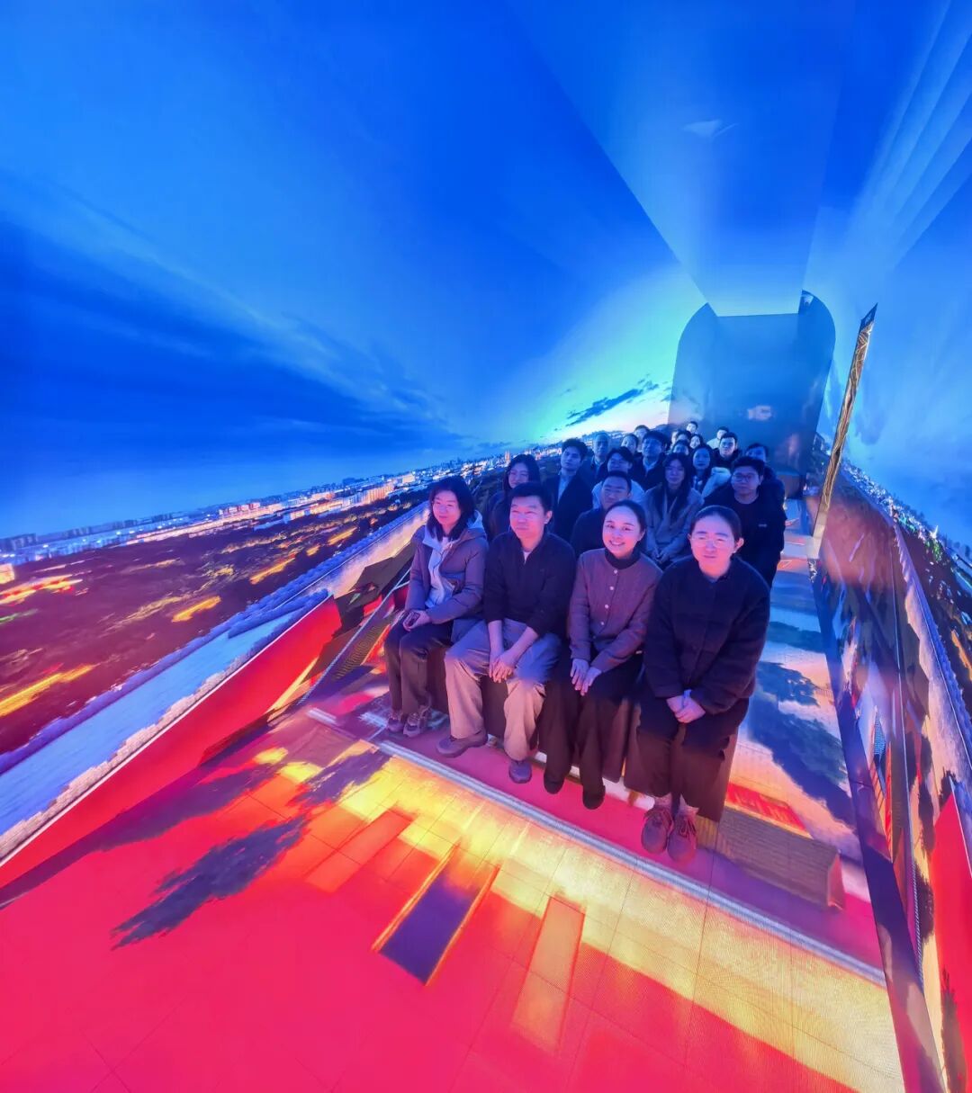 跟随讲解员的生动讲述,师生们系统学习了习近平新时代中国特色社会主义思想的时代背景、科学体系和深刻内涵;在8个单元、2个专区组成的长廊中,全景式感受了在习近平新时代中国特色社会主义思想指引下,北京在首都规划、京津冀协同发展、科技创新、文化建设等方面取得的重大成就。互动感十足的科技展区更是吸睛无数:智能机器人与数据平台“触手可及”;“穿越北京中轴线”模拟列车在动态影像与立体声效中,让古都文脉与现代都市交融,展示科技与文化结合的美感,带来极致的视听震撼。随着列车开往终点,“最火教室”主题课也进入尾声。多样化的展陈形式与前沿科技手段深度融合,令参观师生流连忘返、赞叹不已。