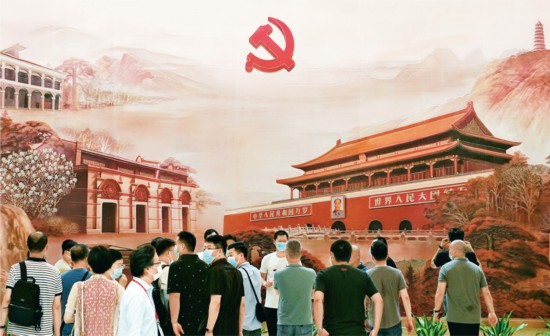 伟大建党精神是我们党团结带领人民不断从胜利走向胜利的强大精神动力。图为观众在上海中共一大纪念馆的“日出东方——从石库门到天安门”历史组画前参观。 新华社记者 刘颖/摄